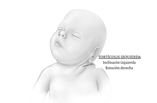 La tortícolis congénita, también conocida como tortícolis congénita muscular o tortícolis muscular congénita, es una condición en la que un bebé nace con un acortamiento o contracción anormal de los músculos del cuello. Esto puede causar que la cabeza del bebé se incline hacia un lado y se gire hacia el otro de manera anormal. La tortícolis congénita suele ser visible poco después del nacimiento o durante los primeros meses de vida.